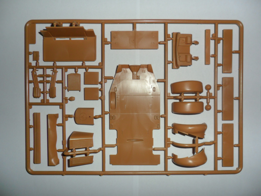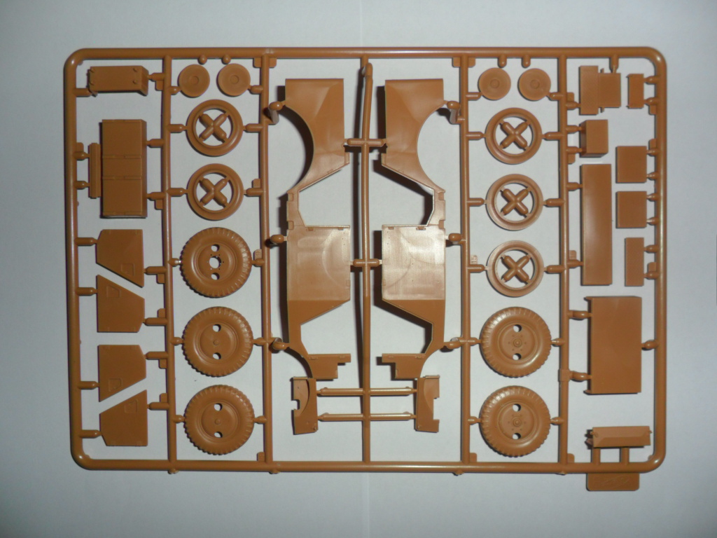Детализированный сборный кузов, проработанный интерьер с сиденьями, панелью приборов, элементами управления, двери выполнены отдельными деталями, имитация брезентового покрытия.