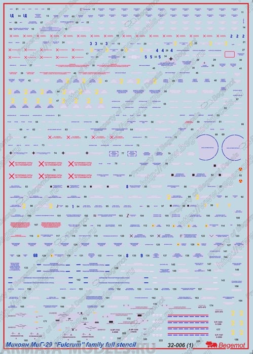 32-006 Декаль Микоян МиГ-29 технические надписи 1/32 Begemot в Кирове, купить в интернет-магазине, цены, фото