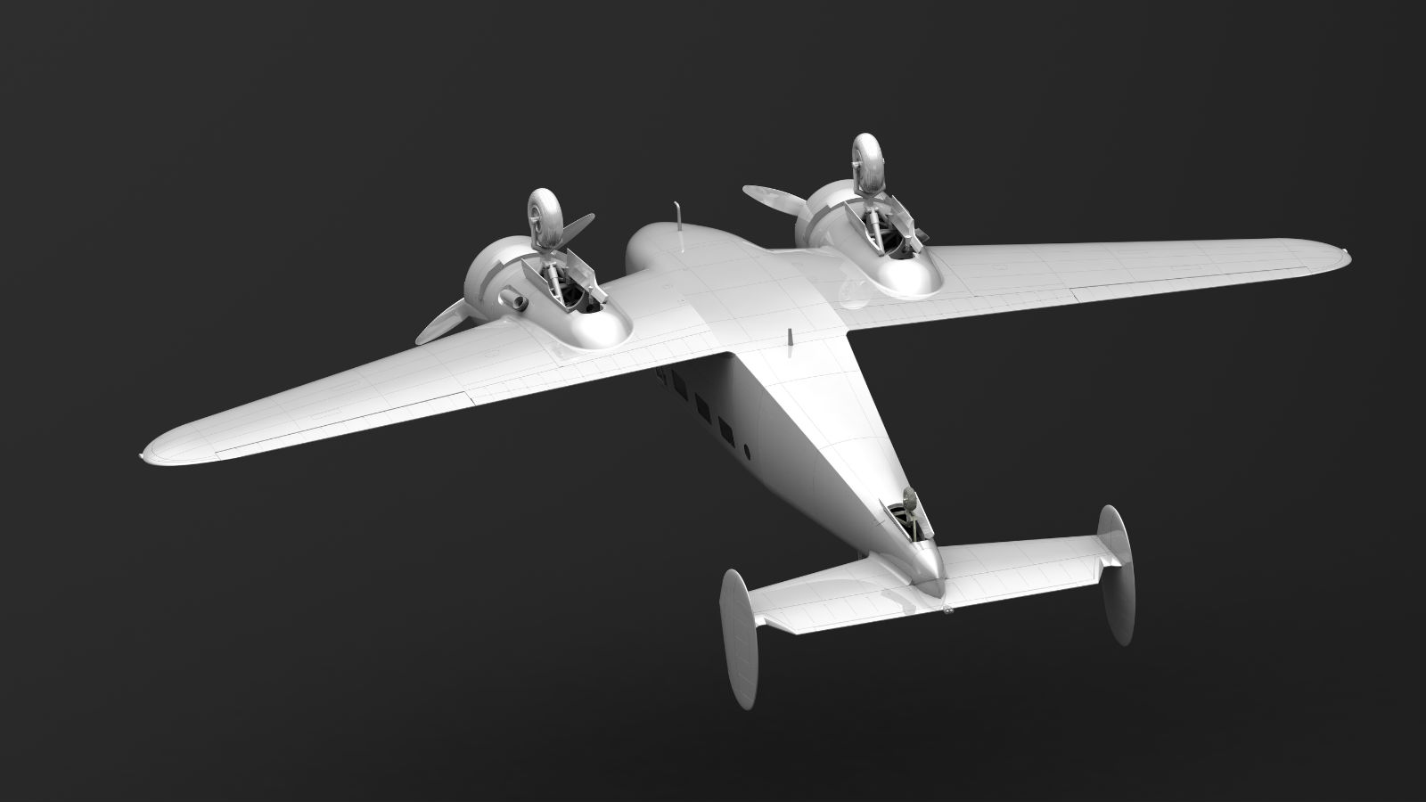 Детализированная кабина с проработанными местами экипажа, элементами управления и панелью приборов, детально проработанные пассажирские места с сборными креслами.
