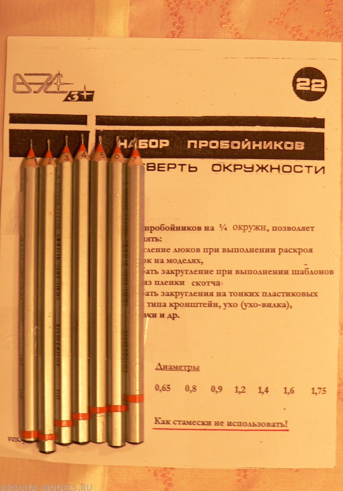 VES-22 Инструмент моделиста №22 Набор пробойников в четверть окружности ВЭС-Модель в Кирове, купить в интернет-магазине, цены, фото