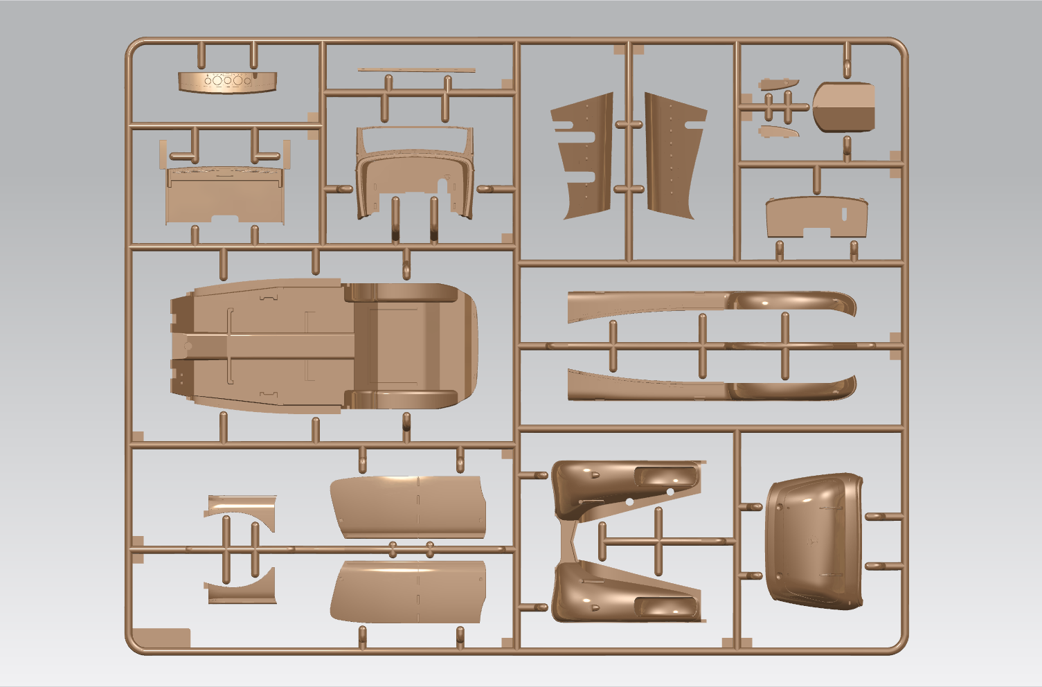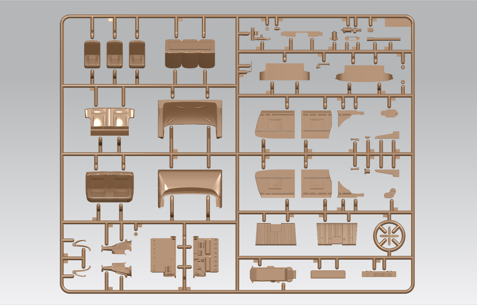 Детализированные мосты, подвеска, трансмиссия, несущая рама выполнена единой деталью, выхлоп выполнен отдельными деталями.