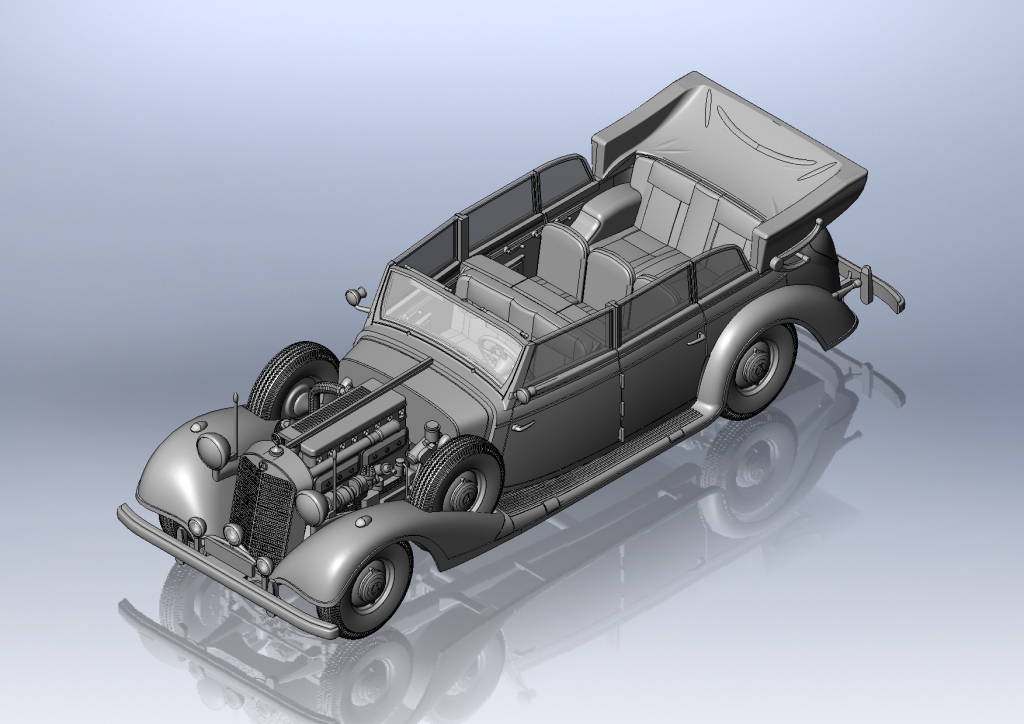 Детализированный сборный двигатель, вариант сборки с открытым капотом.