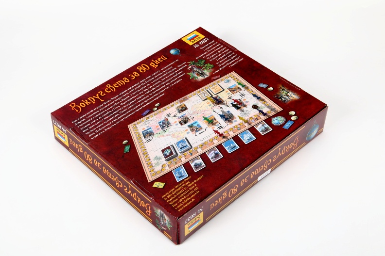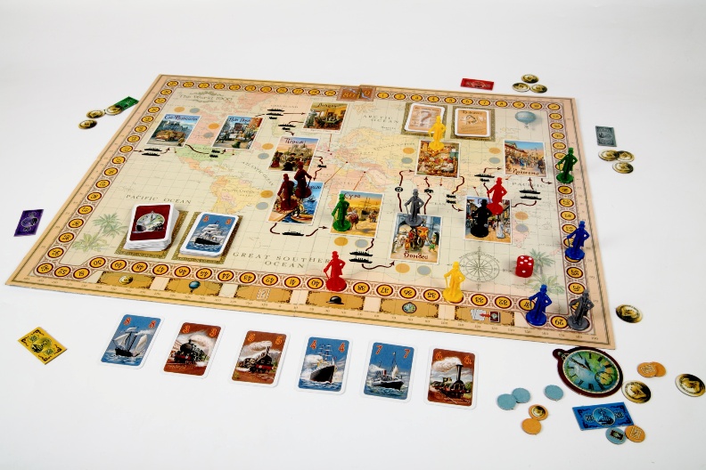 Очень интересная и увлекательная настольная игра по одноименному произведению Жюля Верна. Нестареющий сюжет, интересный дизайн. Игрокам предстоит совершить кругосветное путешествие из Лондона за 80 дней (в игре – 80 ходов). Для этого у них в распоряжении железные дороги и корабли. Игроки набирают карточки действий и исходя из них применяют различные маршруты. Побеждает тот, кто лучше всего распланирует свое путешествие.