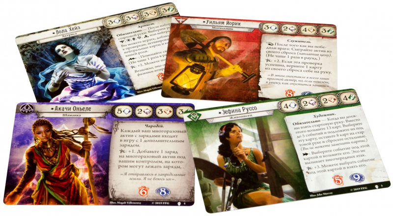 Один из новых игровых персонажей – Лола Хейз – обладает уникальной особенностью. Будучи великолепной актрисой, в начале каждого сценария игрок за неё выбирает себе роль: Хранителя, нейтральную, Ловкача и т. д. От этого зависит, какие карты какого класса игрок сможет использовать при проверках.