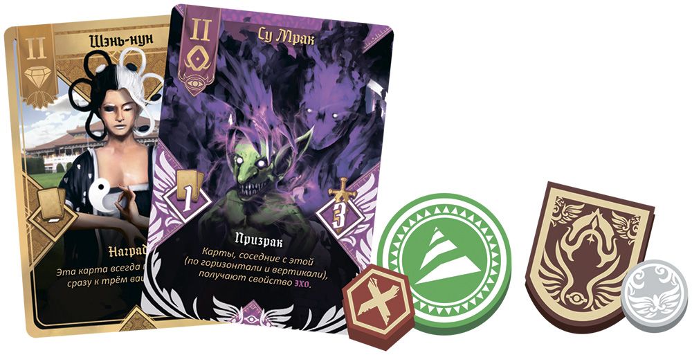 Размер карт: 63х88 мм (рекомендуются протекторы, 120 шт.)