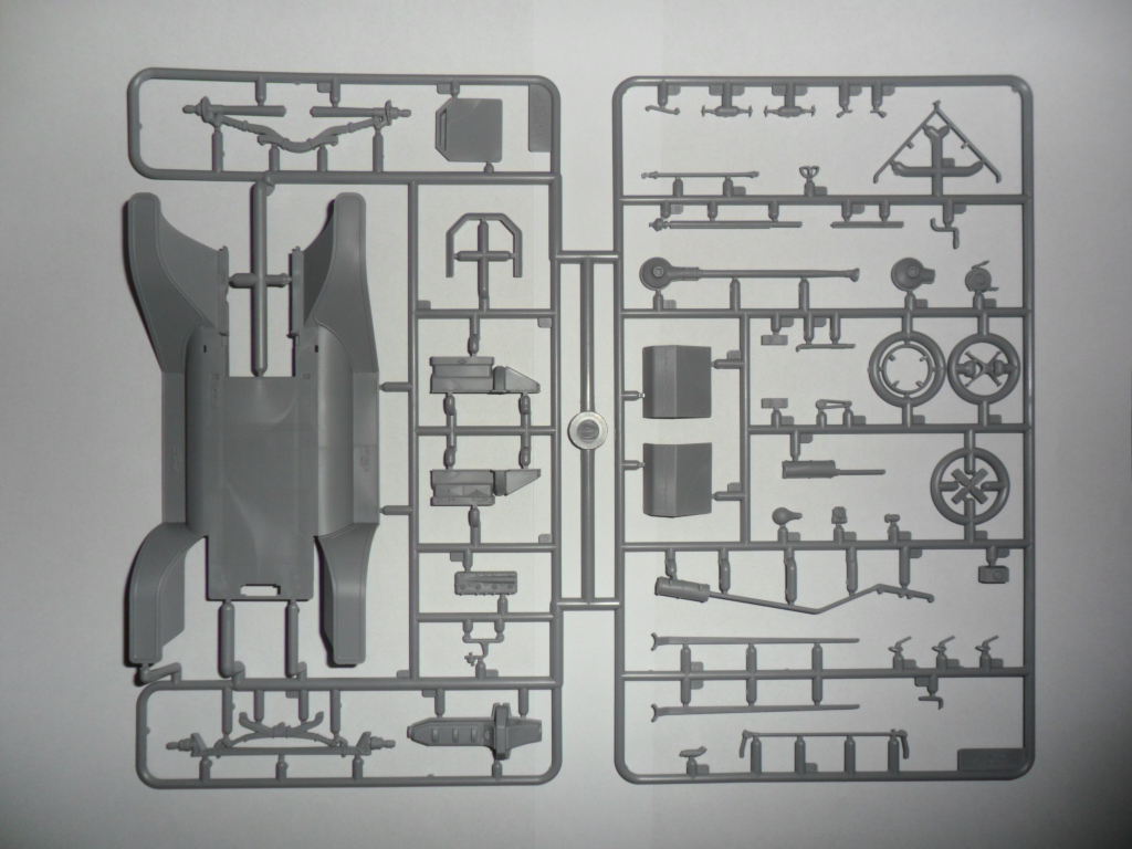Длина модели 142 мм, высота 86 мм, 109 деталей автомобиля и 27 деталей фигур.